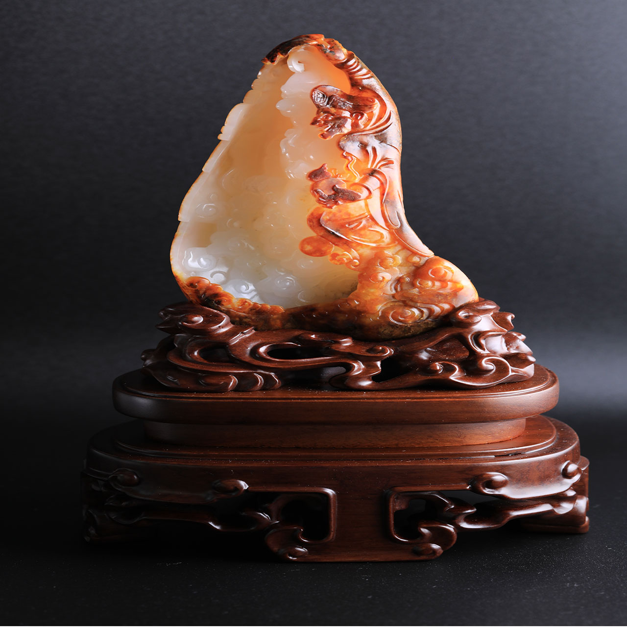 于精神维度观之,《摘星》是理想的炽热注脚。星辰如遥梦高悬,龙却以奔赴之姿,诠释追梦者的果敢。恰似古往今来逐梦人,不惧现实沟壑,为事业巅峰、人生愿景披荆斩棘,借执着作楫,驶向理想彼岸,哪怕征途漫漫,也要触碰璀璨星光。它也承载着对自由与超越的向往,星辰无拘闪耀,龙挣脱束缚欲与星共舞,是创作者对精神自由的叩问,亦呼应观者困于世俗时,渴望破局、突破局限,向着辽阔翱翔的心声。而那摘星之手,更是对未知的勇敢探寻——星辰背后,宇宙深邃如人生未知,《摘星》以玉为语,邀人踏上精神征途,在一方玉石间,照见追理想、寻自由、探未知的心灵可能,让温润玉质与灵动雕刻里,始终漾着浪漫憧憬的光 。