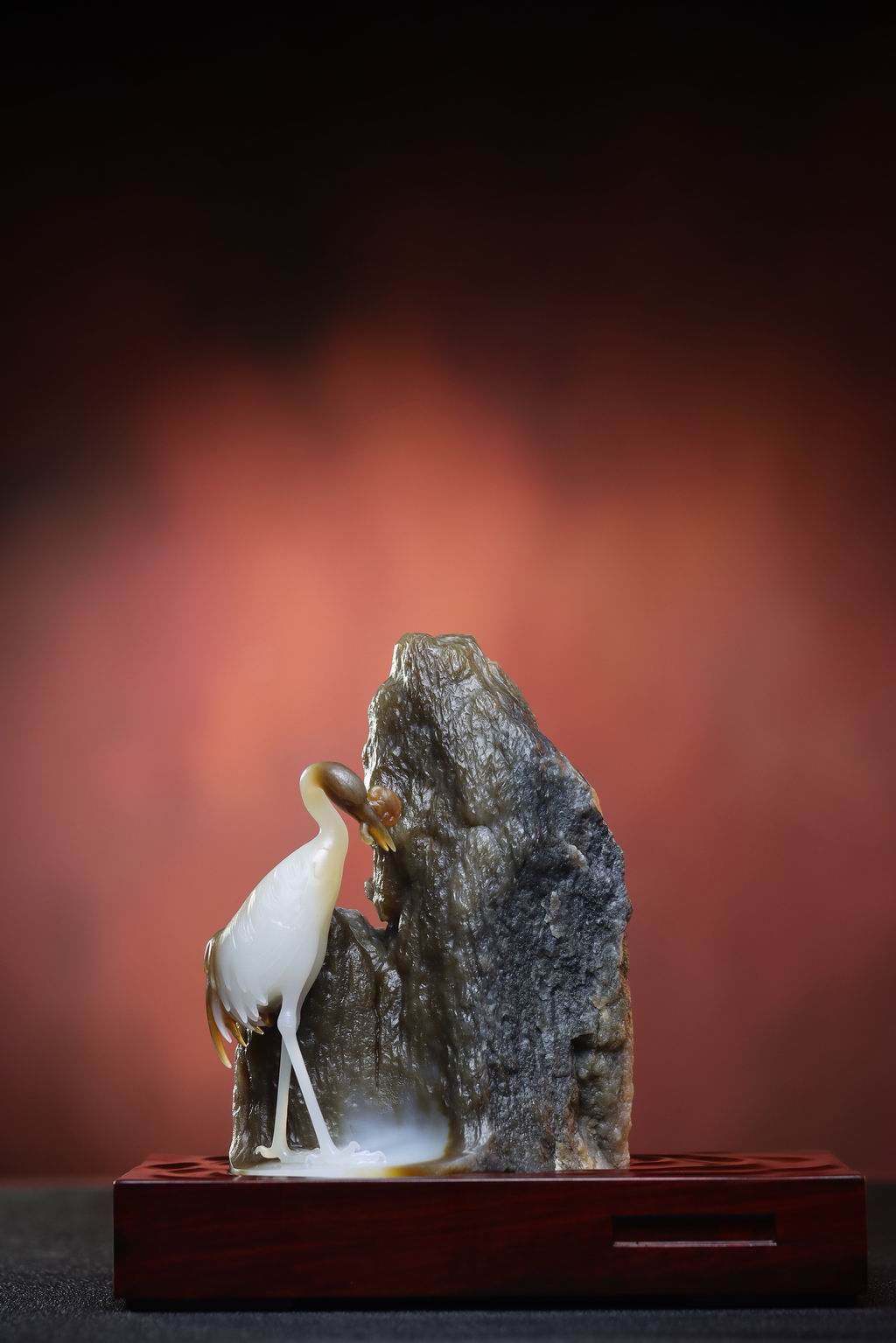 玉琢仙姿立石旁,千年雅意韵悠长。丹顶一点灵犀在,静守清辉岁月长。一方玉石,化出仙鹤临崖。天地灵气凝于雕琢间,是艺术,更是东方意趣的诗意栖居。玉雕仙鹤伴山岩,巧用天然色与形。岁月沉淀灵韵在,静言观之悟禅情。以玉为笺,绘仙鹤偎山。天然皮色晕染,雕琢间藏着对长寿、清雅的期许,中式浪漫尽在其中。玉石裁作天地景,仙鹤独立意悠然。皮色天成添妙趣,一雕一琢见真禅。