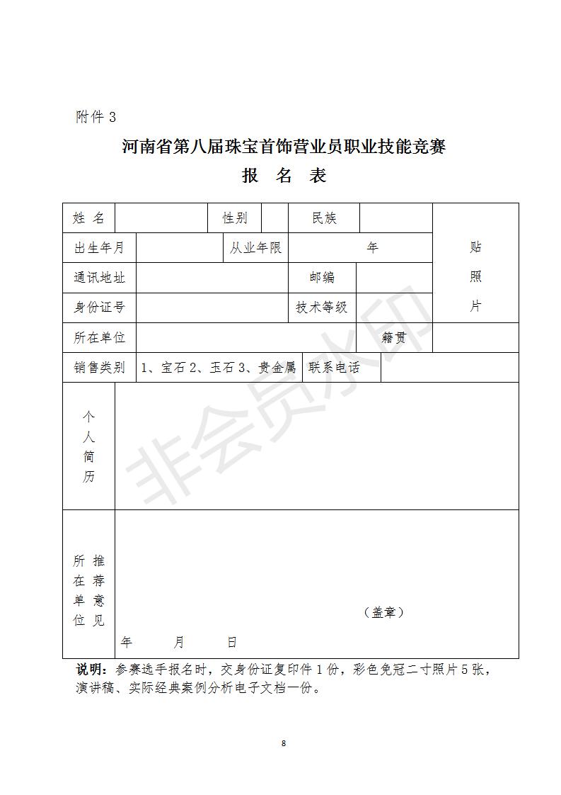 关于举办河南省第八届珠宝首饰营业员 职业技能竞赛的通知