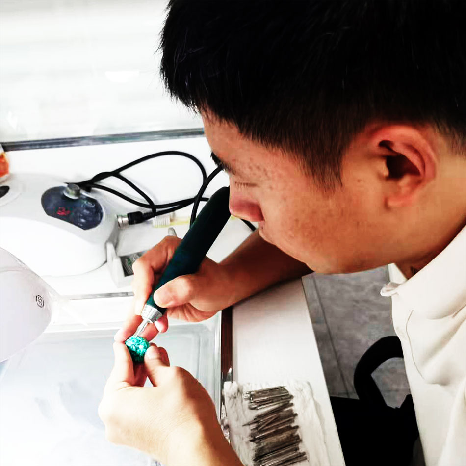 申晓瑞,男,汉族,1990年生,河南省新密市人,河南省玉石雕刻大师。2009年跟随田雪峰大师学习密玉雕刻;2014年跟随高松峰大师学习翡翠雕刻;2016年跟随卢云峰大师学习阿拉善俏色巧雕。2018年成立素心兿雕工作室,作品以人物造像为主,在省市评比竞赛中屡获奖项!