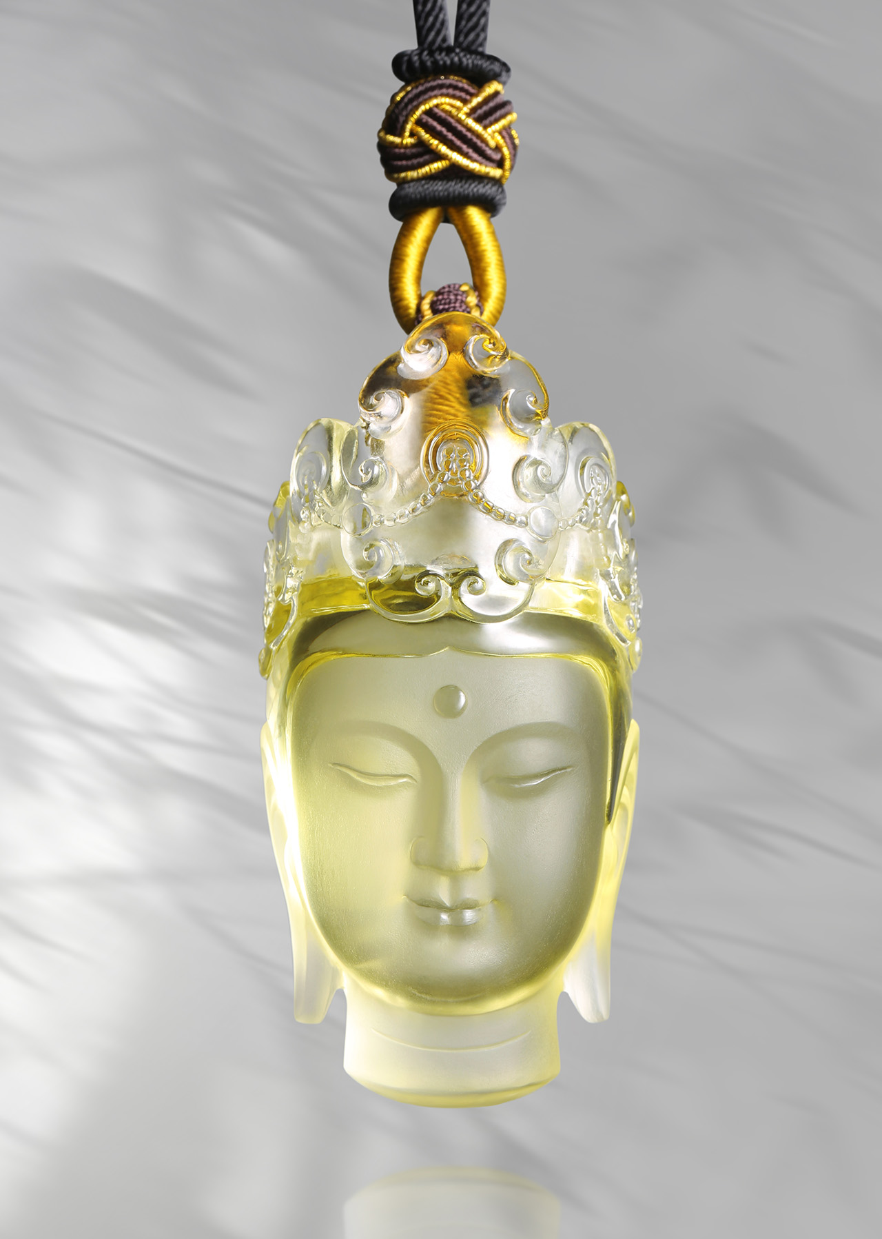 创作灵感:源于佛教文化中观音菩萨慈悲为怀的形象,优质天然黄水晶色泽明亮均匀、晶体通透澄澈的特质,与观音形象所蕴含的纯净、神圣感相契合,从而引发创作构思。