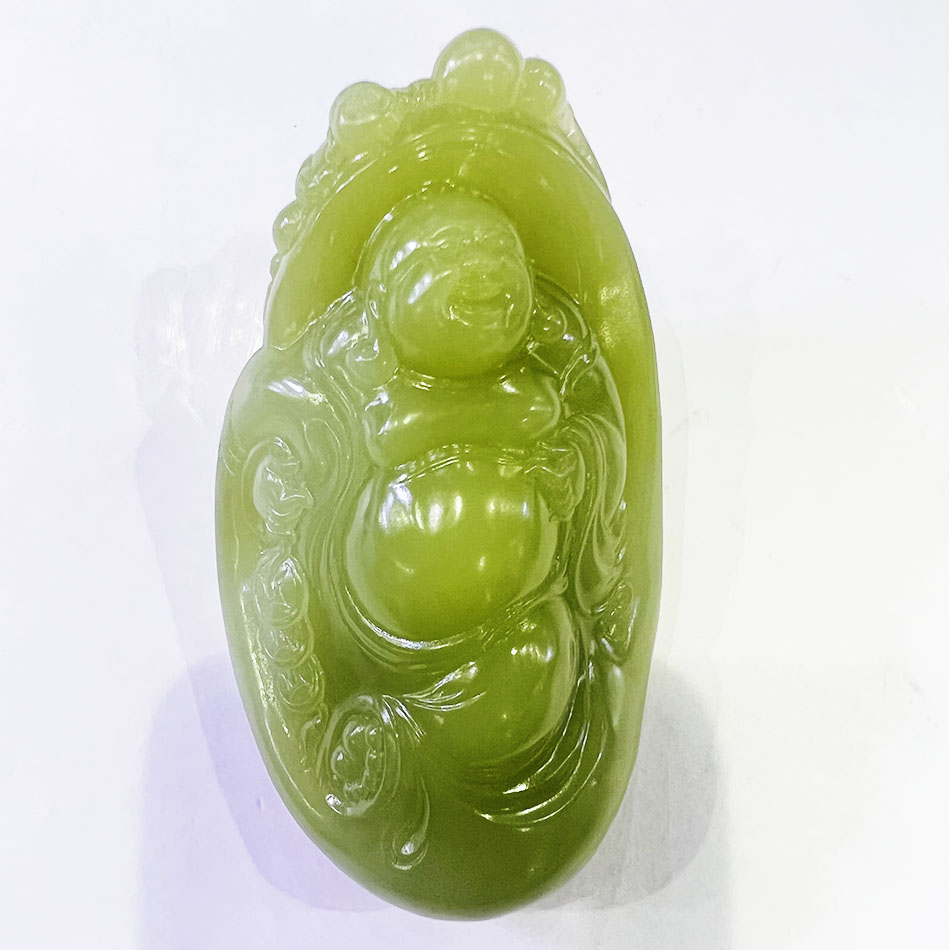 此款为新疆若羌黄口笑佛手把件,用料上乘,密度十足,油润度佳,抛光精细,简单大方,玉料油润细腻,佩戴大气。油润度佳,色泽温润,手感舒适。佩戴此件,举手投足间高雅雍容,尽显高贵气息